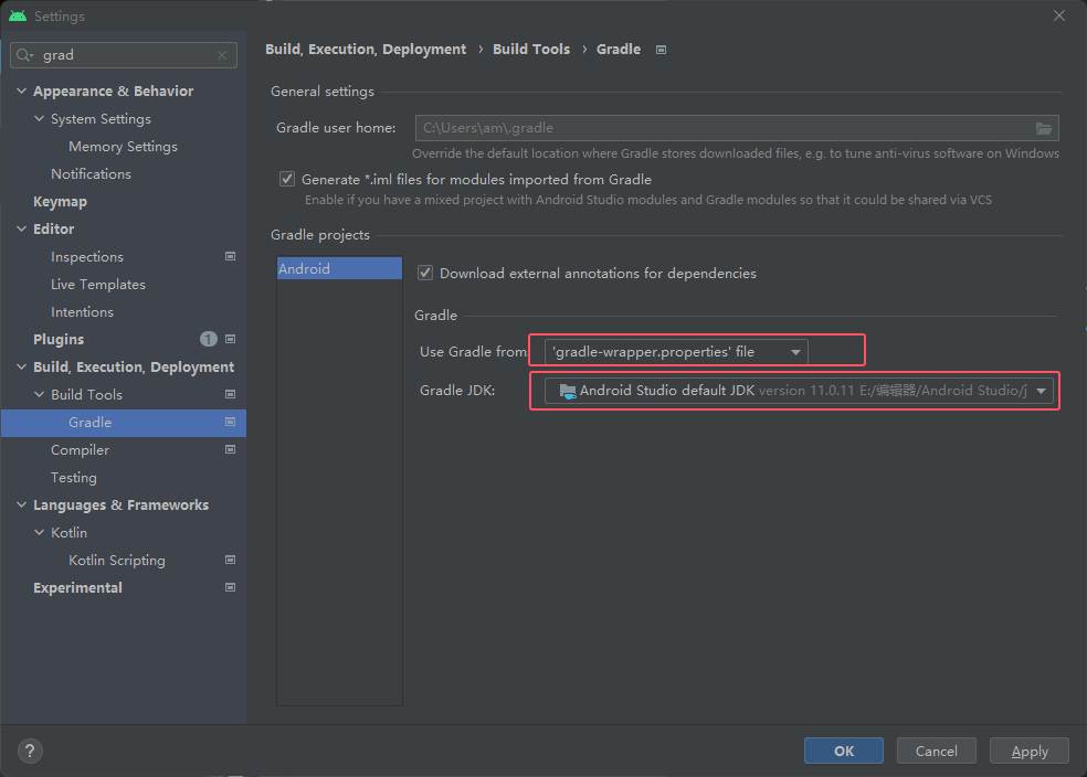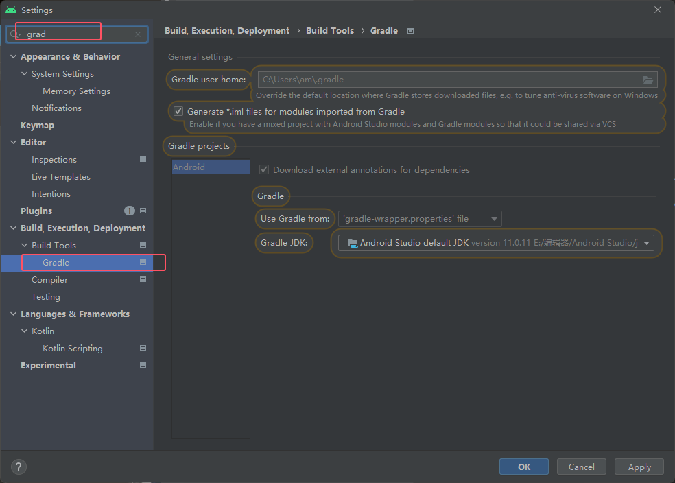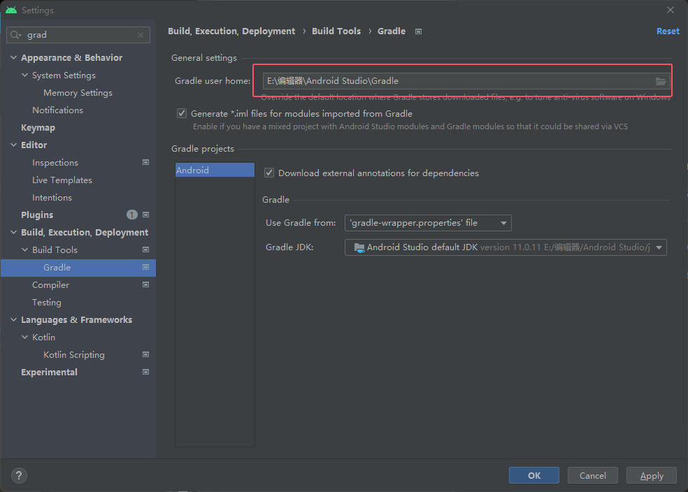 可以给它改个目录,Gradle是用来把代码打包成apk的