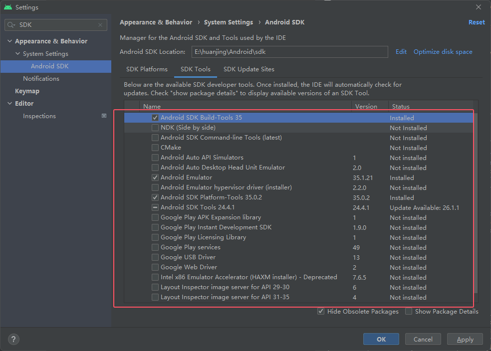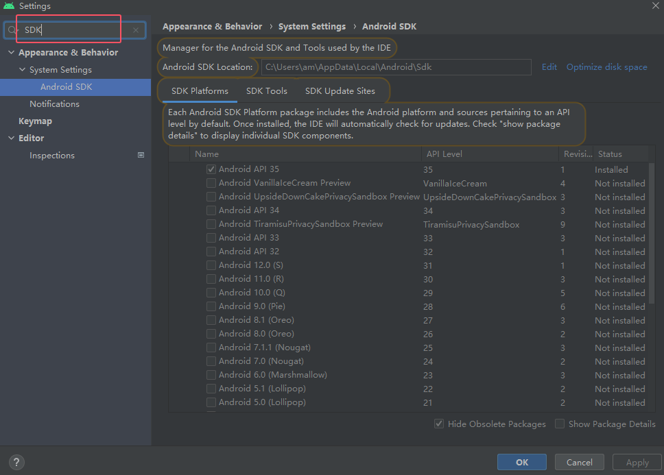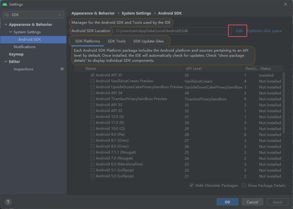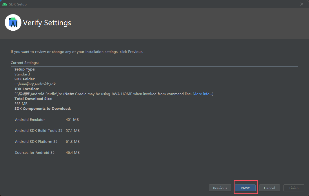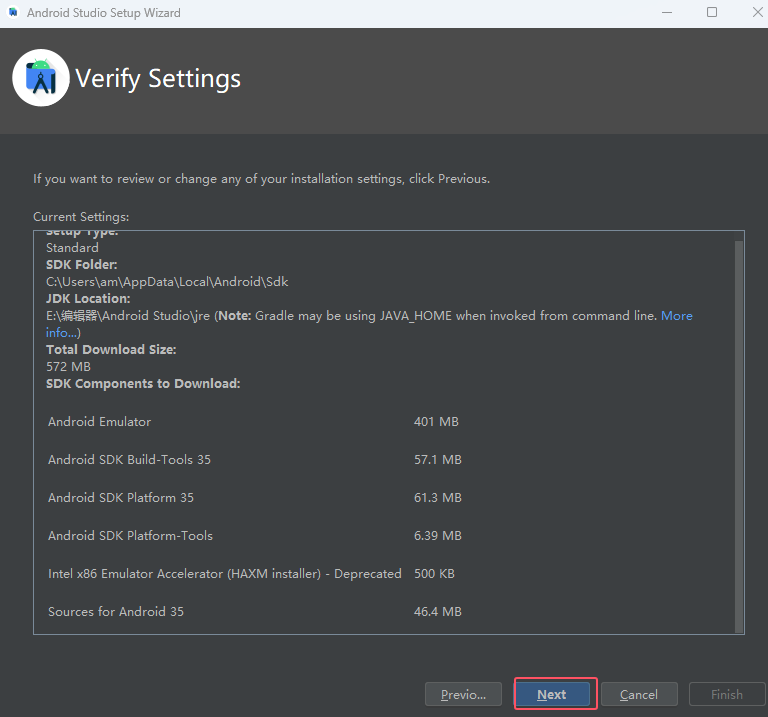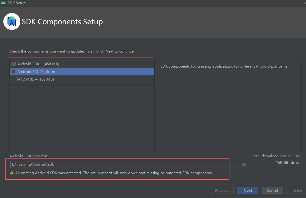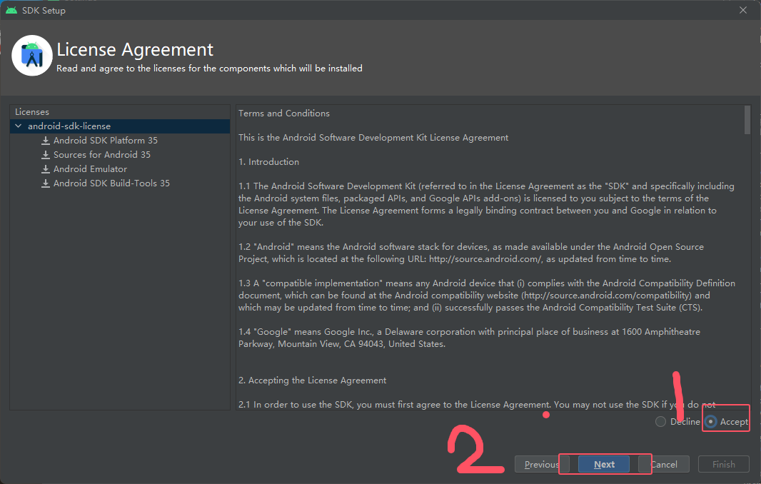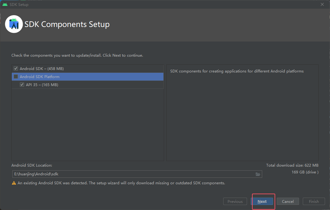 然后 Android Studio是一个写代码的工具,接下来要安装编译代码的工具,叫做安卓SDK