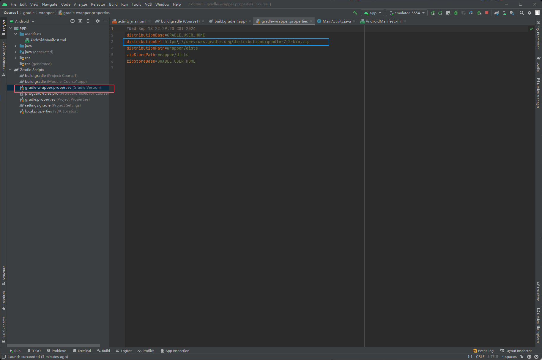 然后下图红框的文件是Gradle的配置,如果本地没有Gradle它会去蓝色位置的地址去下载