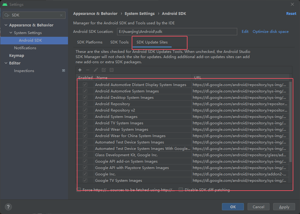 然后点击下图红框,选择上方下载的SDK,SDK的目录要全英文无空格