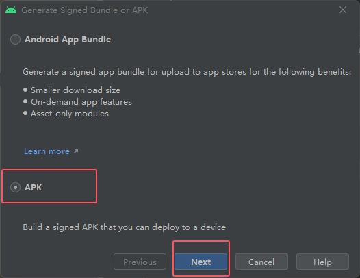然后上面是通过点运行创建的apk文件,正常apk文件是通过下图红框位置