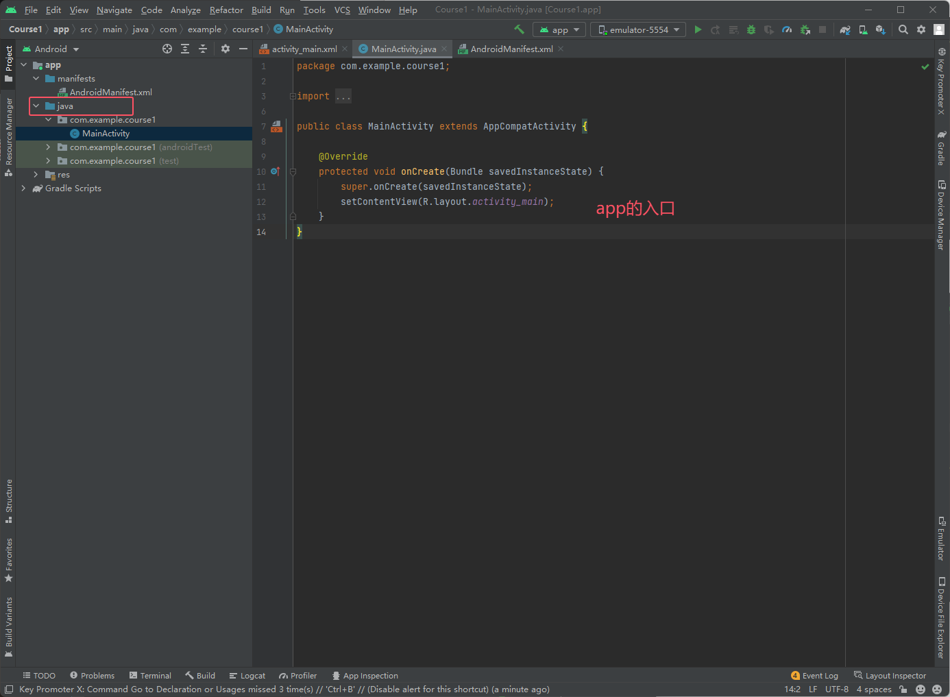 下图红框目录下是写代码的位置,下图是app的入口