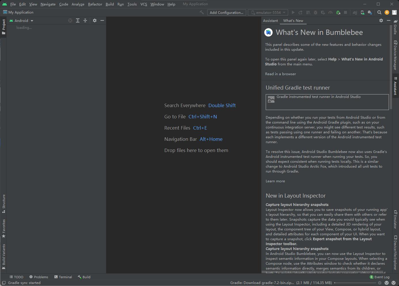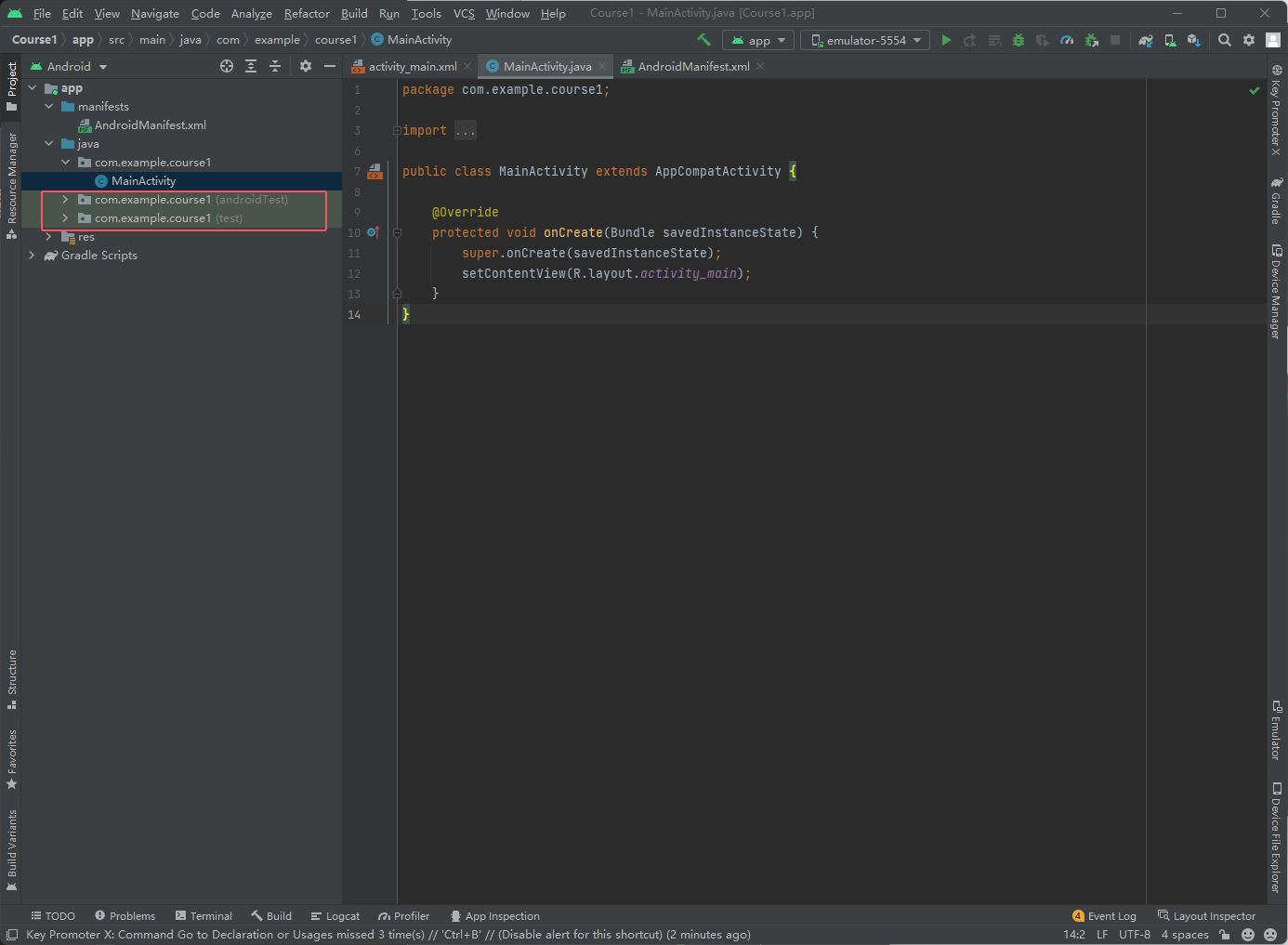 然后回到Android Studio,首次打开应该会是下图的样子,直接点击OK