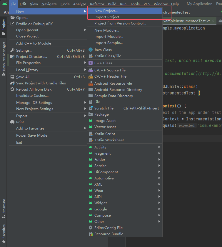 然后上面创建项目是为了上面的设置,接下来真正创建一个项目,如下图点击New Project...