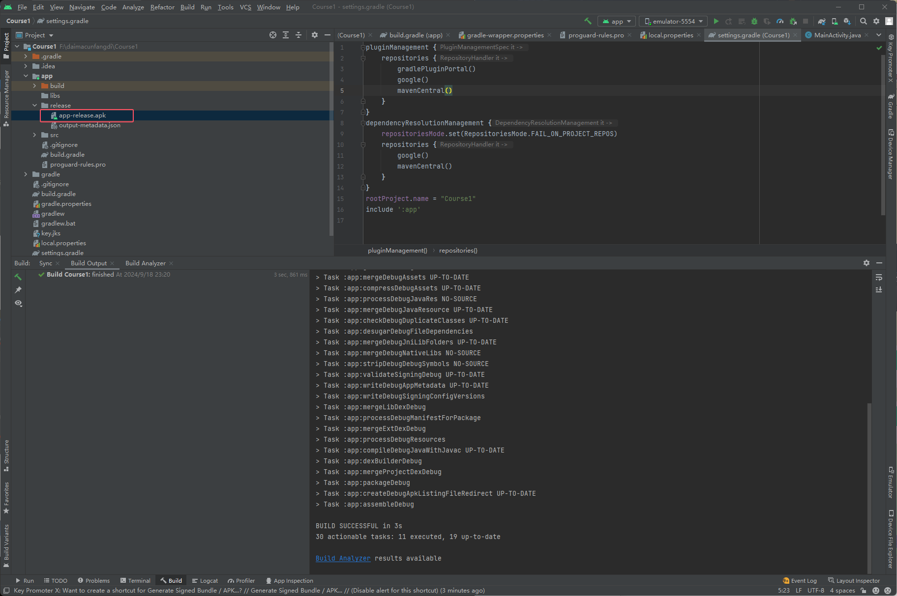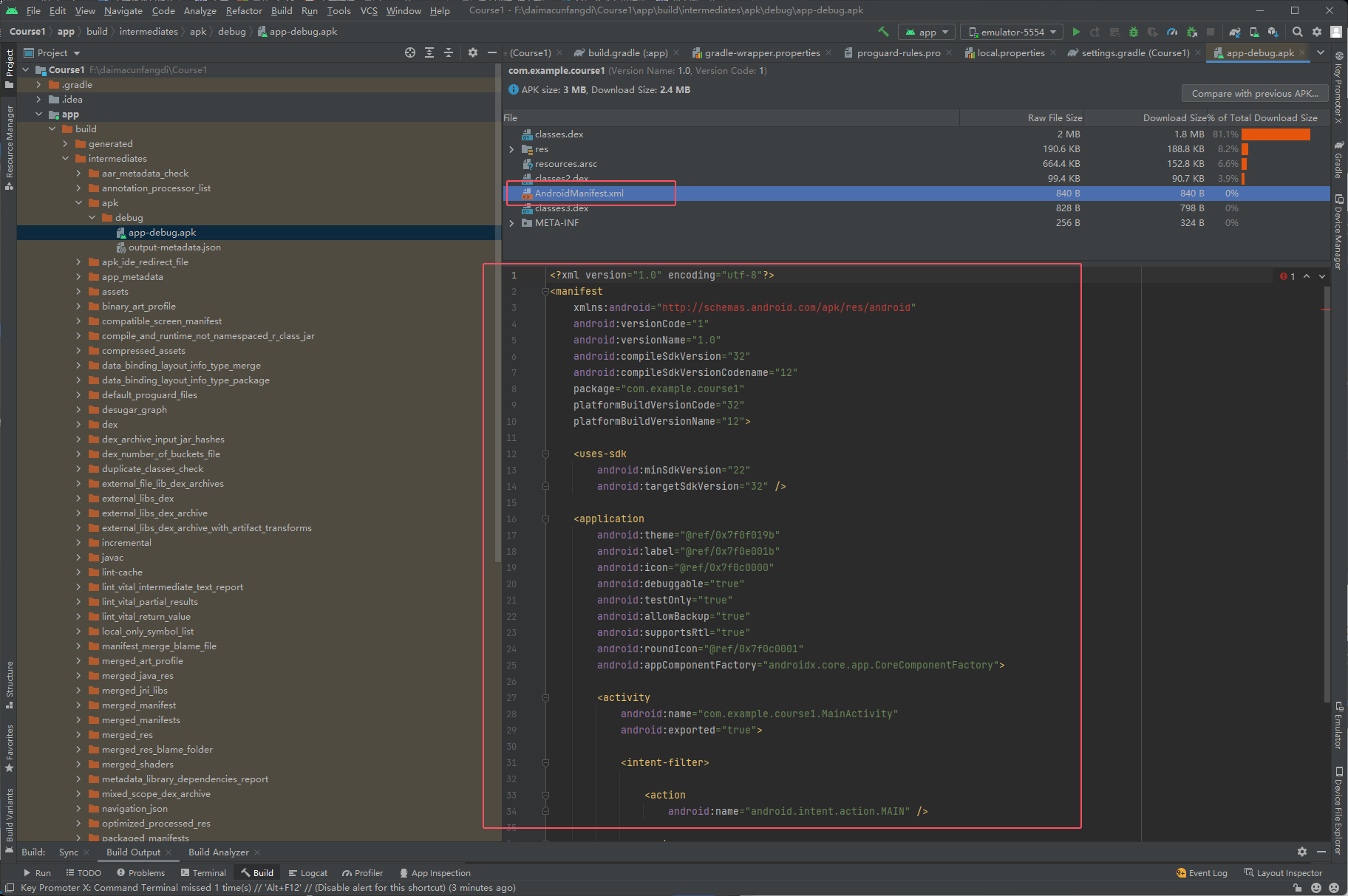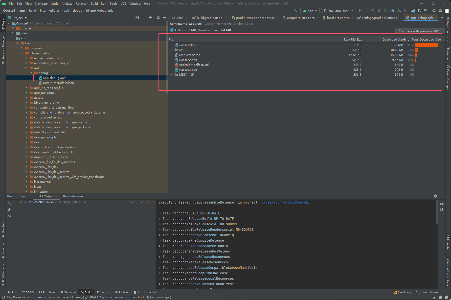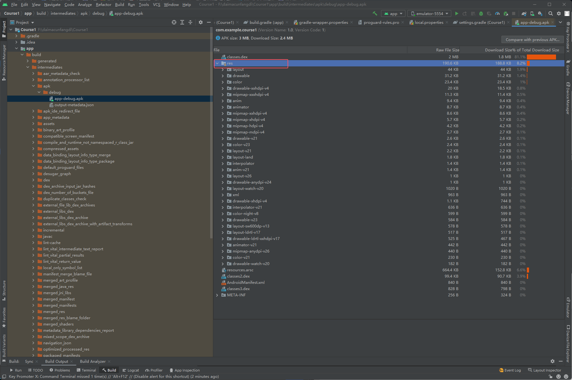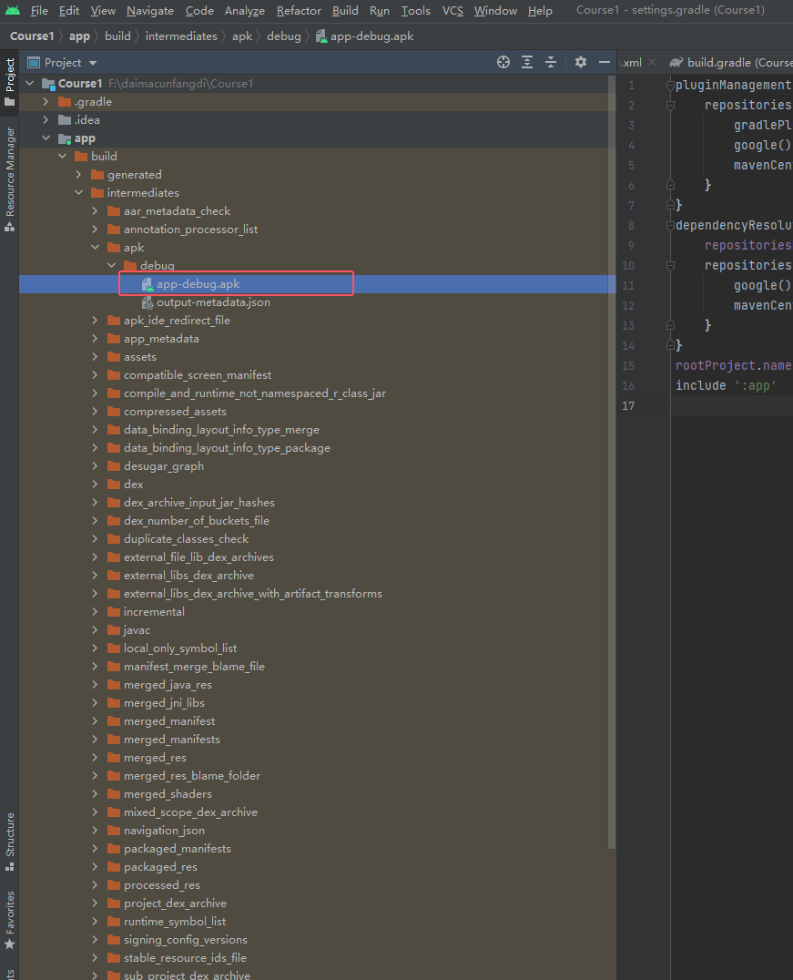 首先运行过之后apk文件就已经存在了,下面是查看这个apk文件,如下图