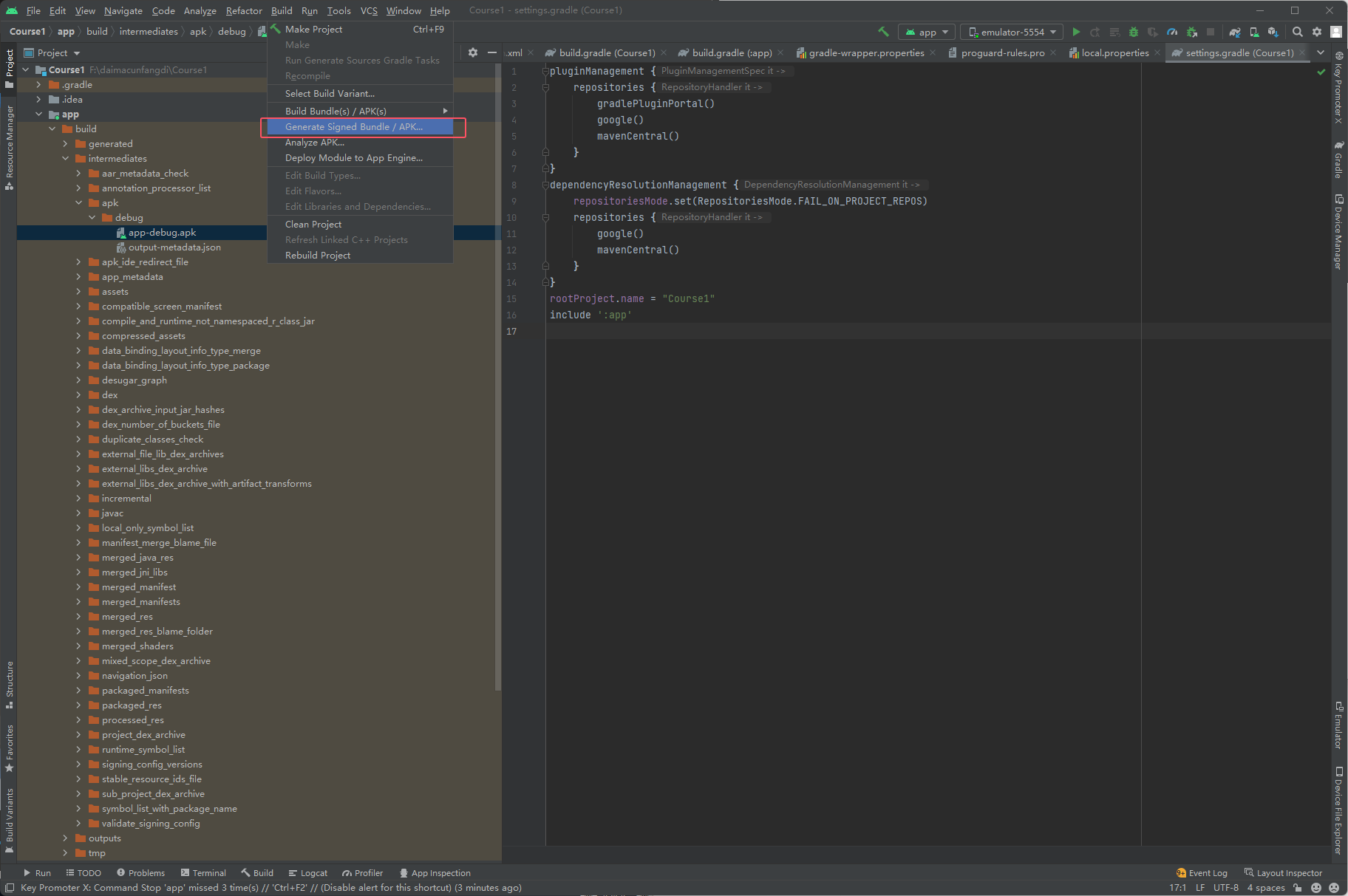 然后接下来是把代码打包成apk文件