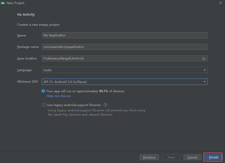然后点击Finish,下图里Save location要选择全英文目录