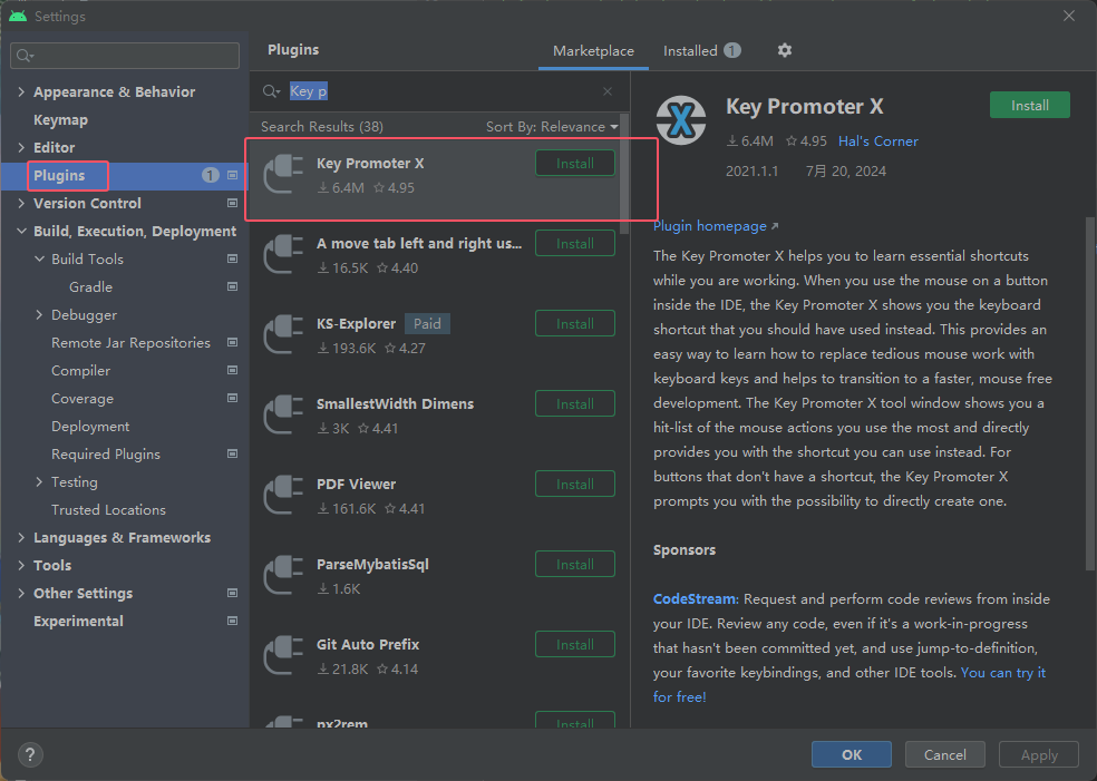 然后安装一下下图红框里的插件,安装完需要重启,所以记得先点击一下上图的OK