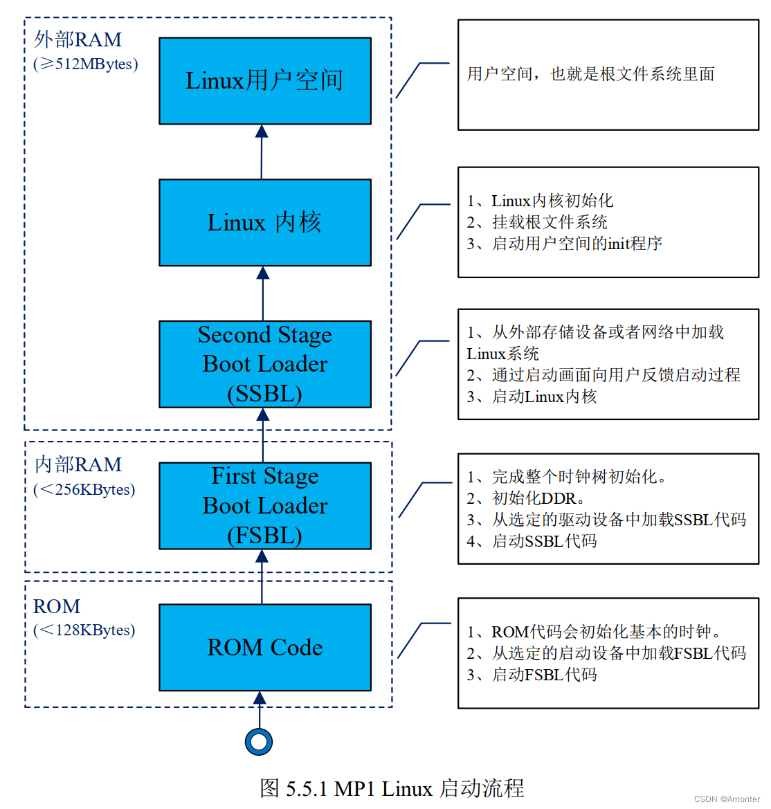 【2】SSBL:第二阶段启动文件,一般是U-Boot,有的系统还会需要设备树(.dtb)文件,此部分在片外的DDR中运行,所以不需要担心空间问题。