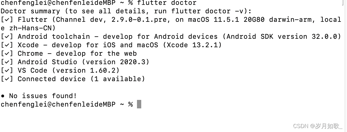验证 flutter 命令是否可用,可以执行下面的命令检测: