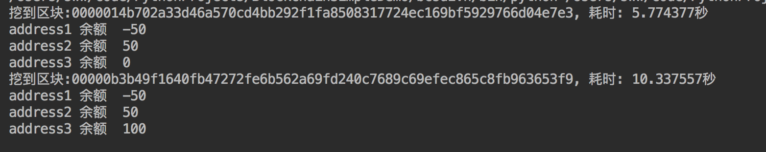 print('address1 余额 ', blockChain.get_balance_of_address('address1'))