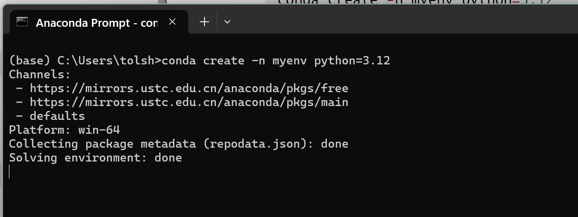 打开终端(建议使用 Anaconda Prompt),创建一个新的 conda 环境: