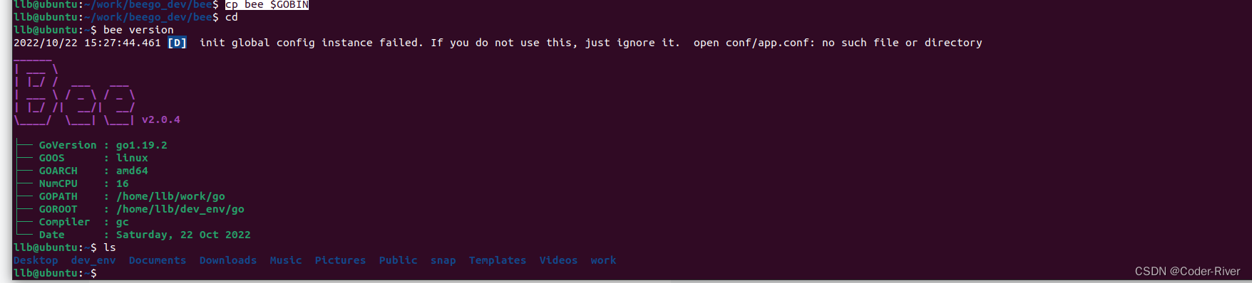 生成bee之后,把bee放到环境变量里,我这里把bee放到了GOBIN里