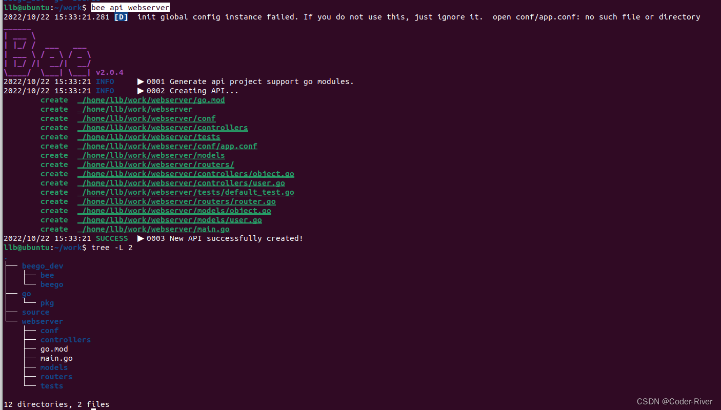 将bee放到环境变量里之后,刚才git下载的beego和bee 源码其实就可以删掉了,因为bee新建的api项目,通过go mod tidy就可以进行管理依赖包
