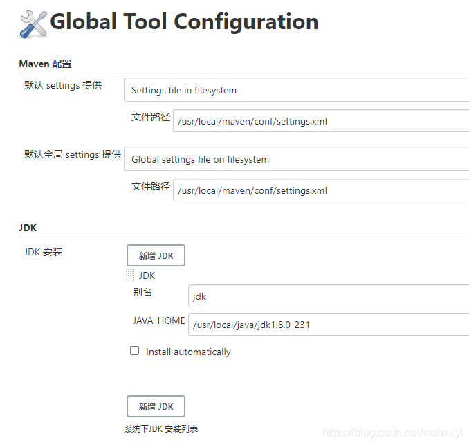jenkins 服务器 配置 Maven JDK Git 执行路径