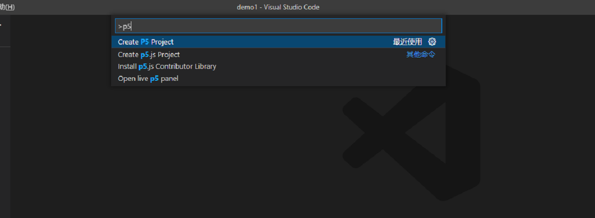 使用快捷键(Ctrl+Shift+P),在打开的输入框中输入p5,下拉列表中选择Create P5 Project