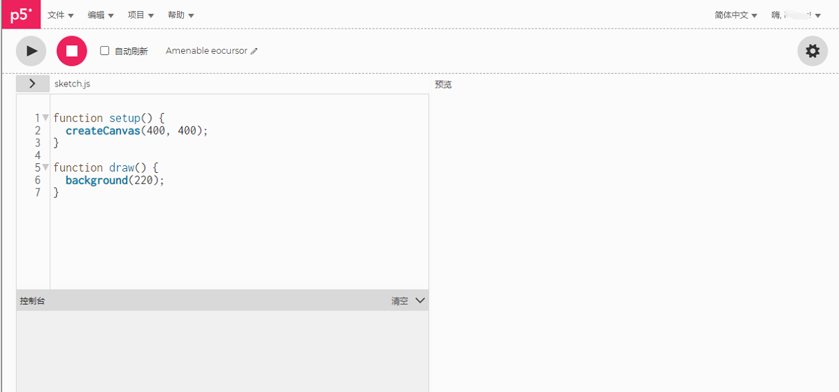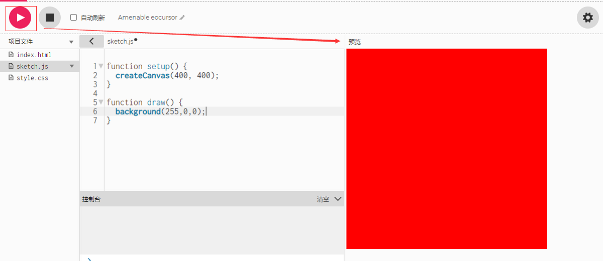 一概述本文介绍P5.js的两种开发环境:P5.jsweb编辑器:官方提供了页面编辑及运行预览环境本地开发环境(VScode):基于插件创建项目并进行开发二 P5.jsweb编辑器2.1 web编辑器地址https://editor.p5js.org/2.2 编辑器预览图2.3 文件介绍点击sketch.js左侧的折叠按钮,显示文件列表文件列表说明:index.html:项目入口文件,关联sketc