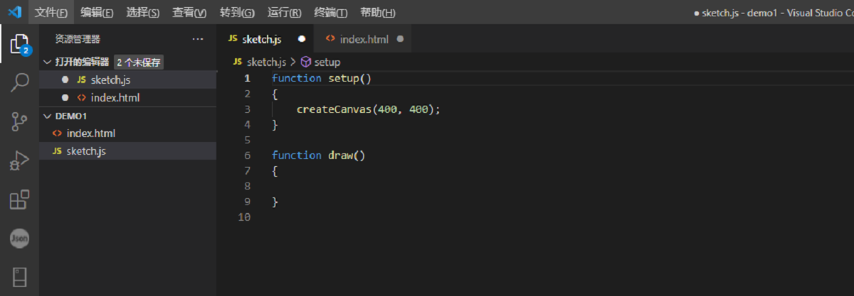 sketch.js - sketch.js:图像绘制文件,有两个必要方法,setup设置绘制图形区域,draw绘制图形