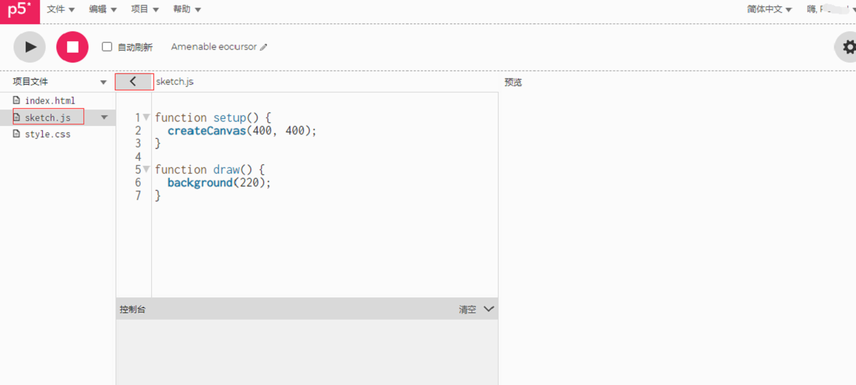 点击sketch.js左侧的折叠按钮,显示文件列表