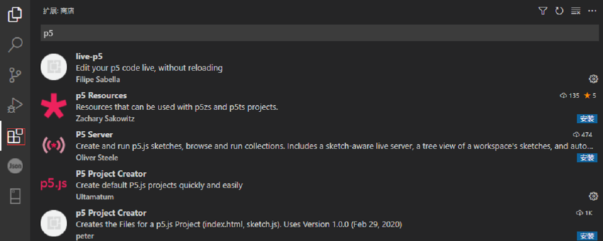 | 3 | P5 Project Creator | 一个创建默认P5.js项目的简单扩展 |