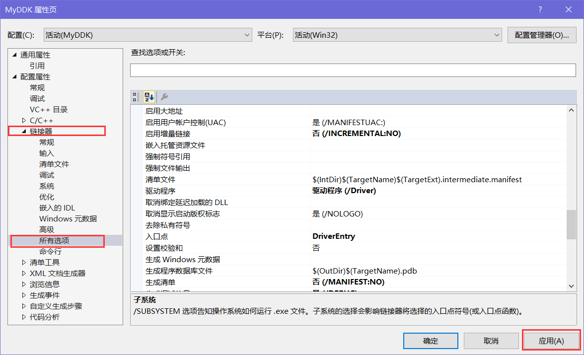 子系统:本机 (/SUBSYSTEM:NATIVE)