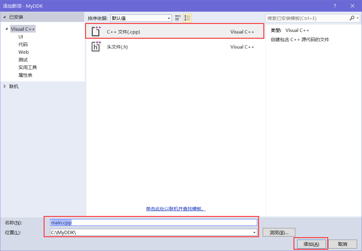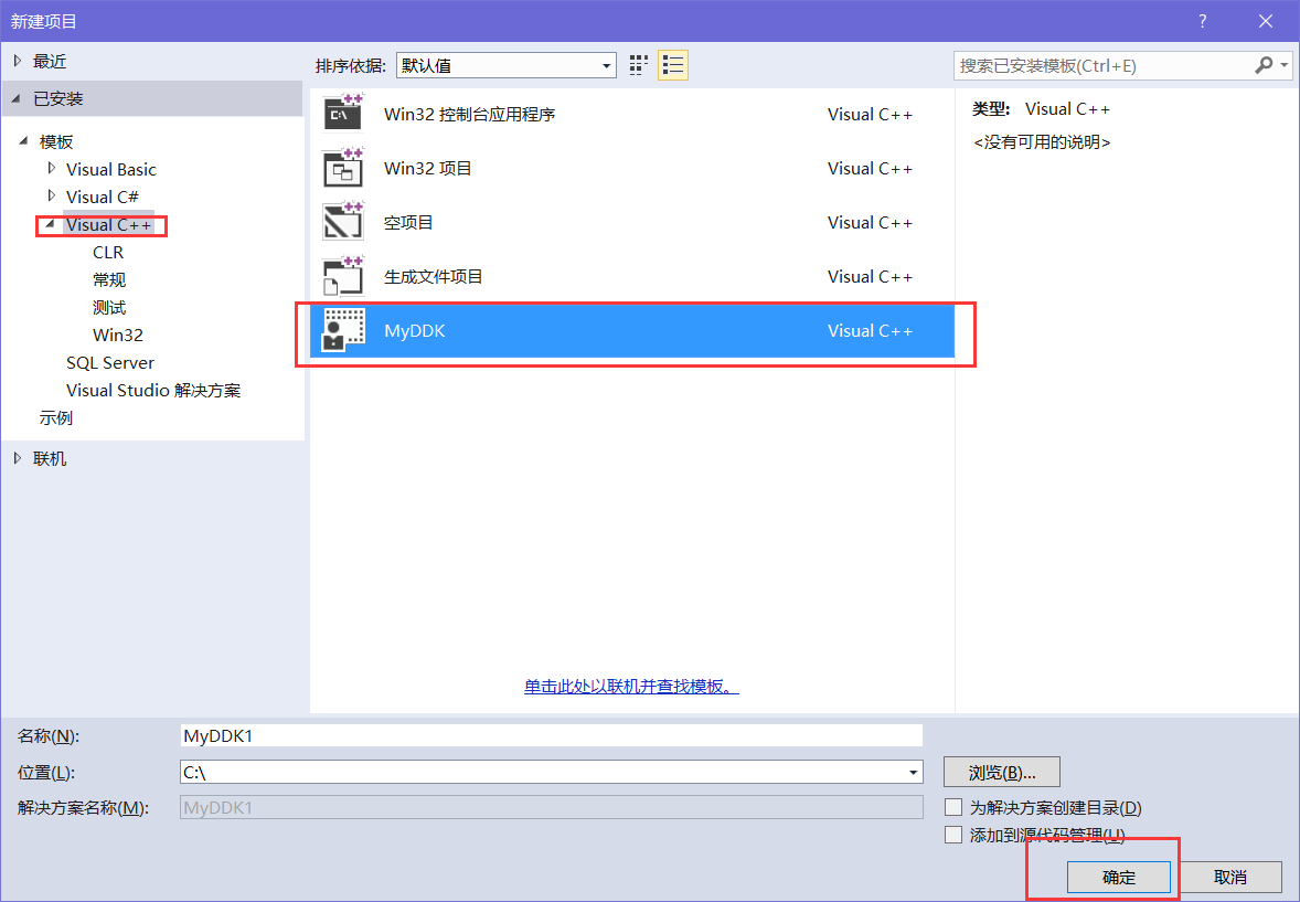 此时关闭VS工具,再次打开,就能直接使用我们的模板来开发驱动了,不需要每次都配置。