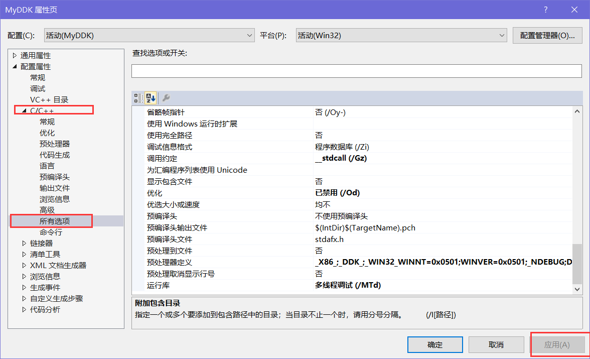预处理器定义: _X86_;_DDK_;_WIN32_WINNT=0x0501;WINVER=0x0501;_NDEBUG;DBG=0;%(PreprocessorDefinitions)