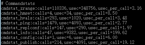 cmdstat_XXX: calls=XXX,usec=XXX,usec_per_call=XXX
