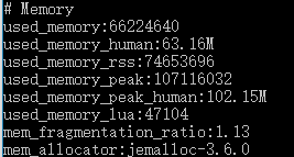 执行info memory, 可以看到当前使用内存量,和峰值