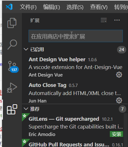 VS Code安装后,我们一般还需要搜索安装一些所需要的插件辅助开发。安装插件很简单,在搜索面板中查找到后,直接安装即可。