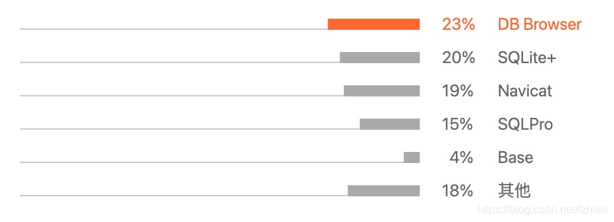 DB Browser 在 Objective-C 开发者中的受欢迎程度略微增加 — 37% 的受访者表示使用此工具。相比之下,在 Swift 开发者中,此数字为 25%。
