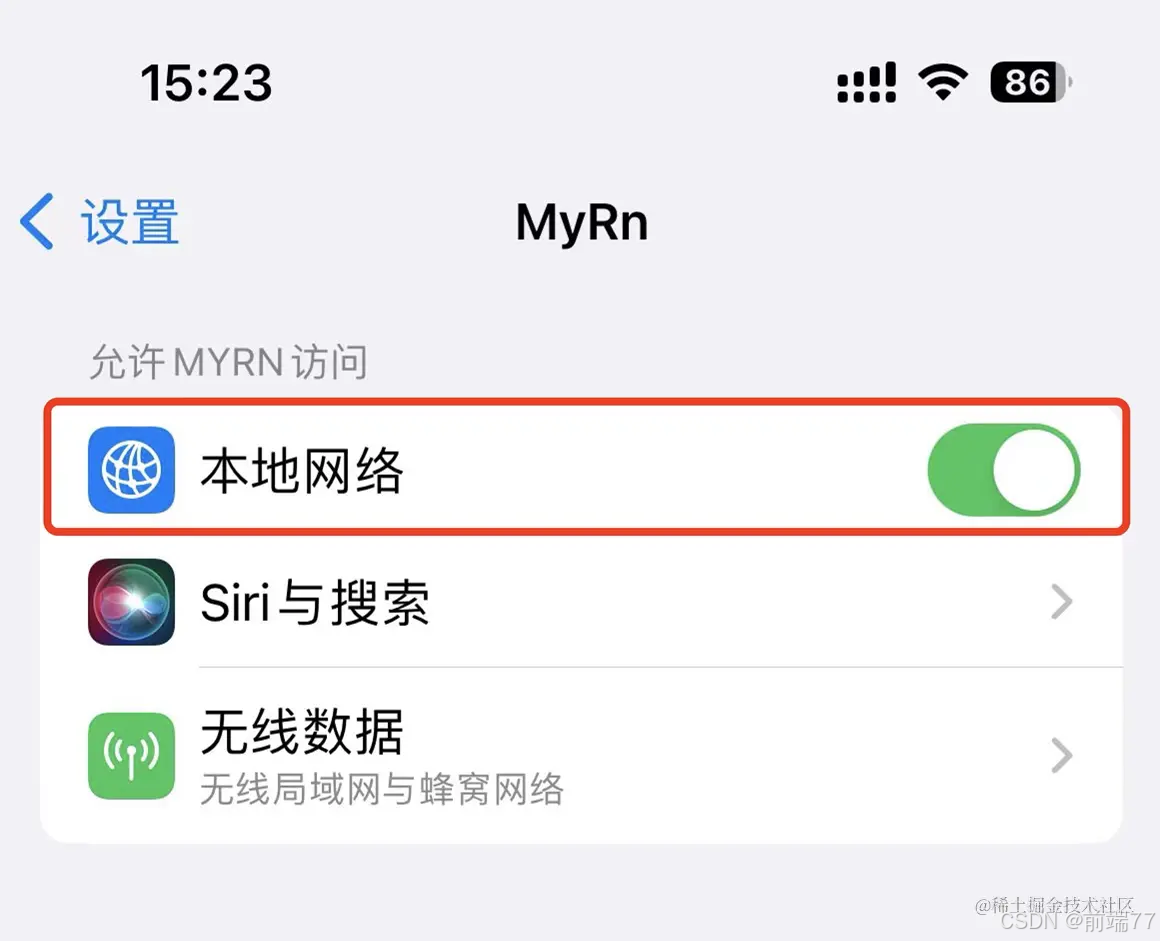 如果是运行到iphone手机上 还有要注意的点,当修改App.tsx内的代码后,发现手机上不会同步更新,这个时候可能是因为没有开启本地网络。
