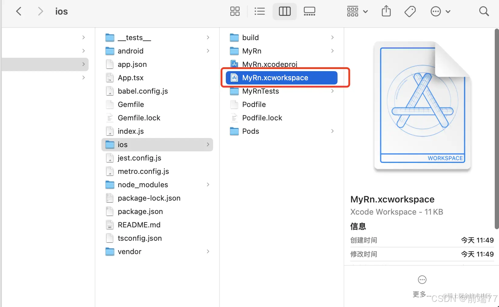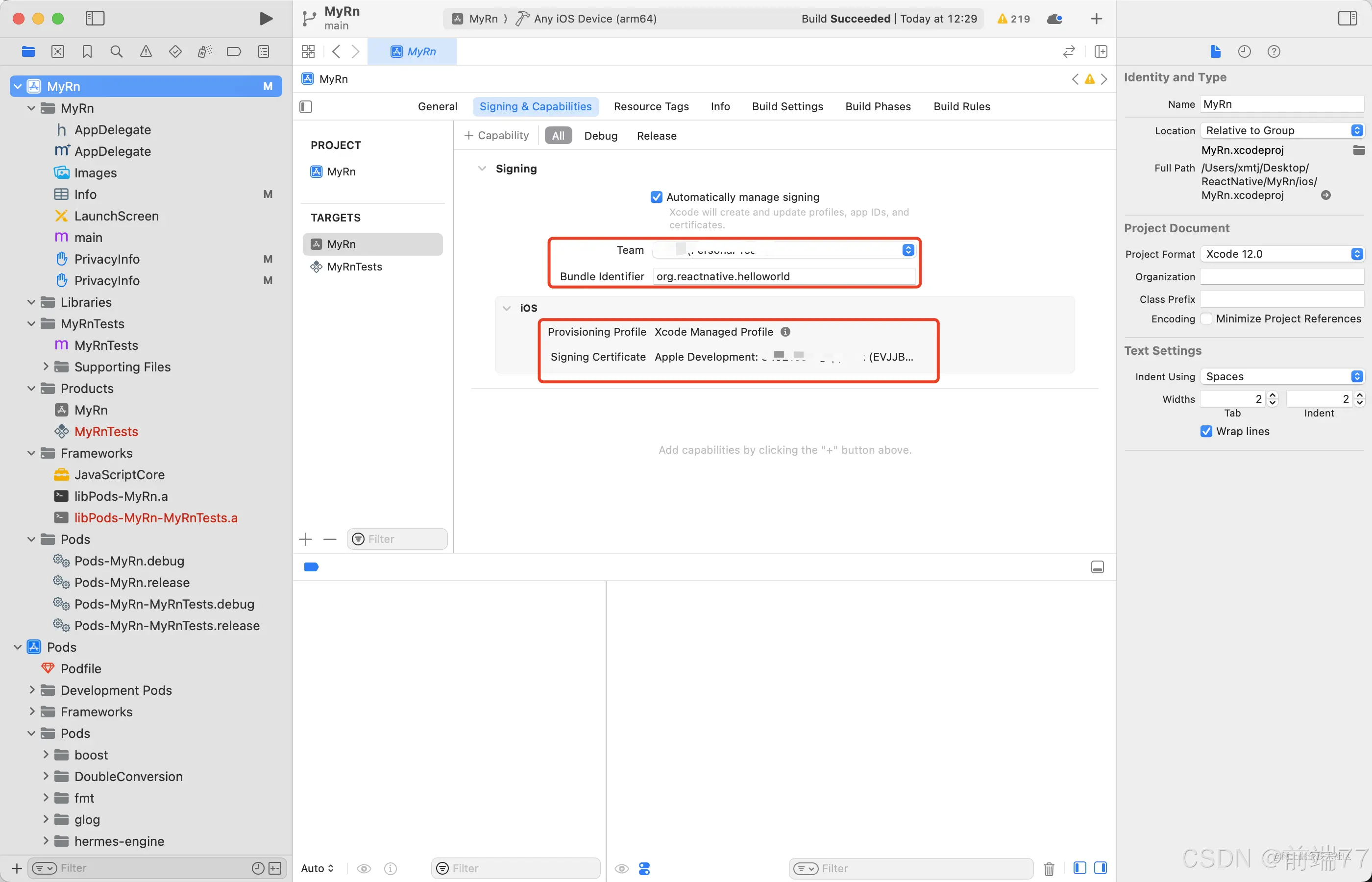 注意:打开ios文件夹内.xcworkspace的后缀文件,修改签名,然后运行到模拟器或真机