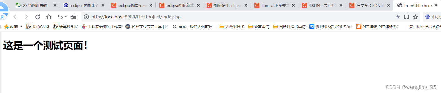 点击finish完成后会自动跳转到你的默认浏览器,展示index.jsp页面内容: