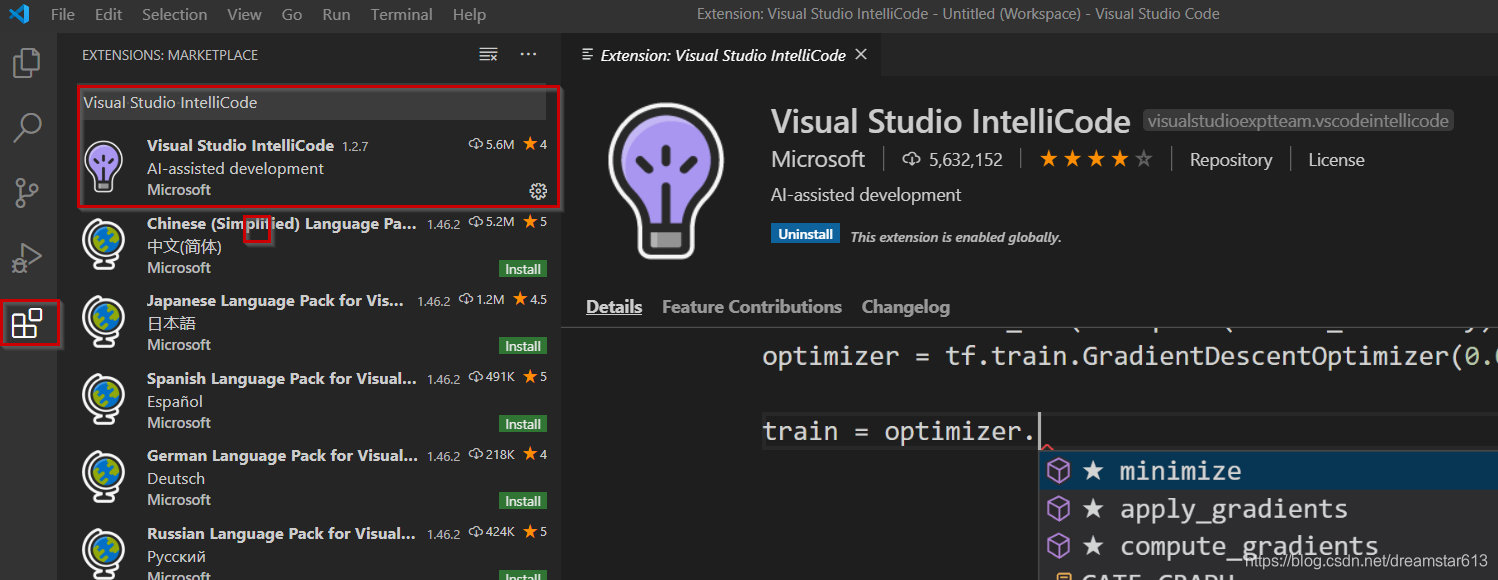 5.3 VS CODE 安装代码补全工具 Visual Studio IntelliCode