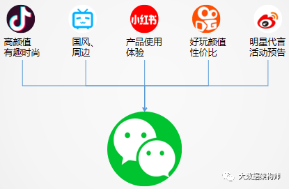 花西子的套路也非常类似,把抖音、微博、小红书、bilibili、快手作为公域流量入口,用KOL直播带货等模式快速圈粉,沉淀到公众号上做深度运营。