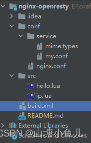 配置openresty-1.21.4.1-win64.zip解压后的目录地址。1.openresty-1.21.4.1-win64.zip包的下载。3.编写build.xml,主要是配置项目路径和nginx路径。ant文件配置,选择项目中的build.xml,需要jdk环境。nginx服务就配置到Idea运行环境中去了。my.conf中配置hello.lua文件路径。nginx.conf中配置my