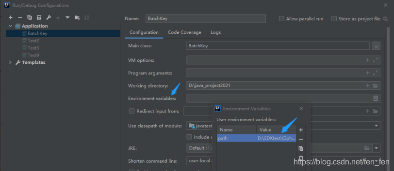 点击Run-->Edit Configurations,进入配置页面,Environment Variables配置上dll的环境变量。