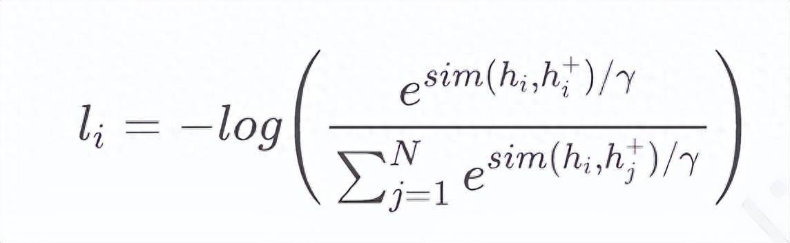 其中,和为和的句向量表示,N为训练过程中batch的大小,为向量和余弦相似度,为温度超参。