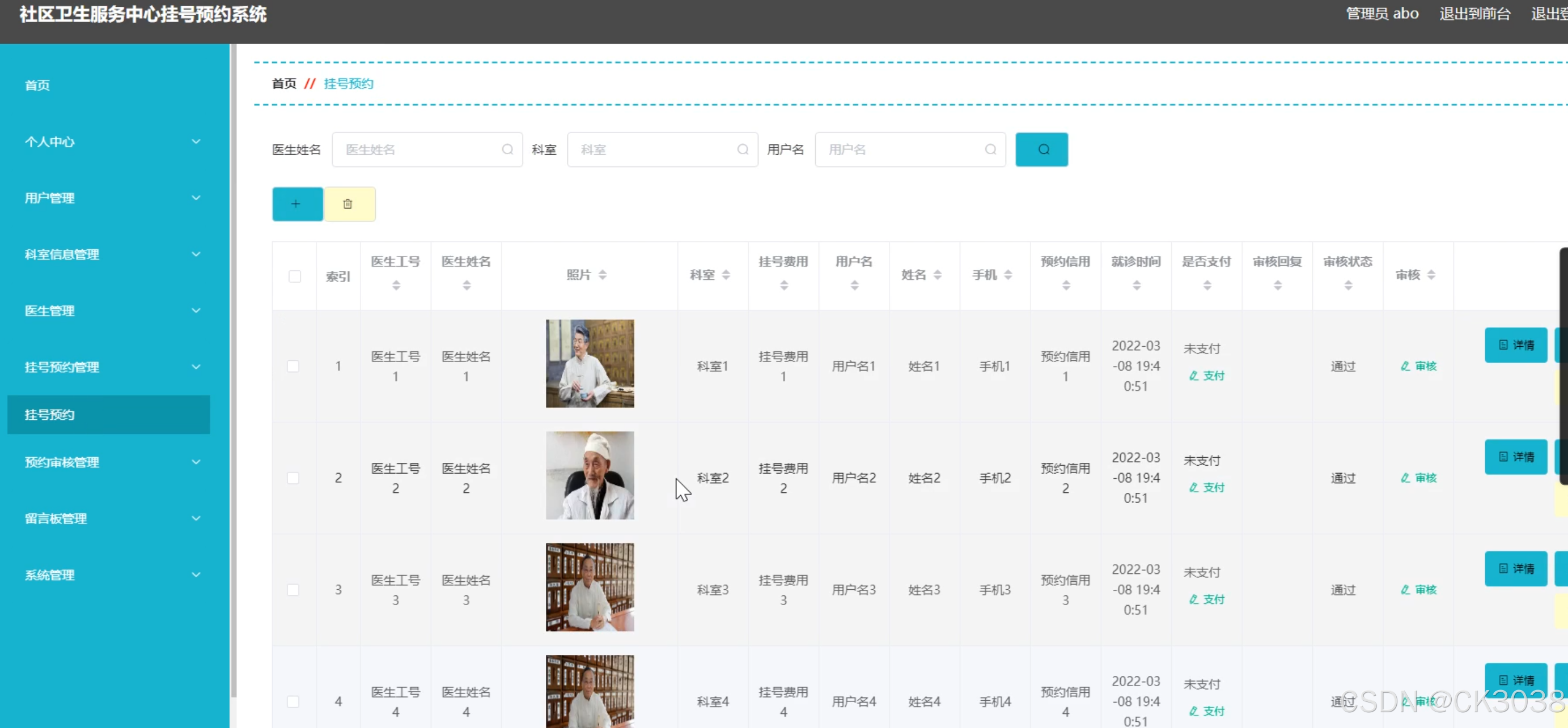 - 提供挂号信息的录入、修改、删除等功能。
