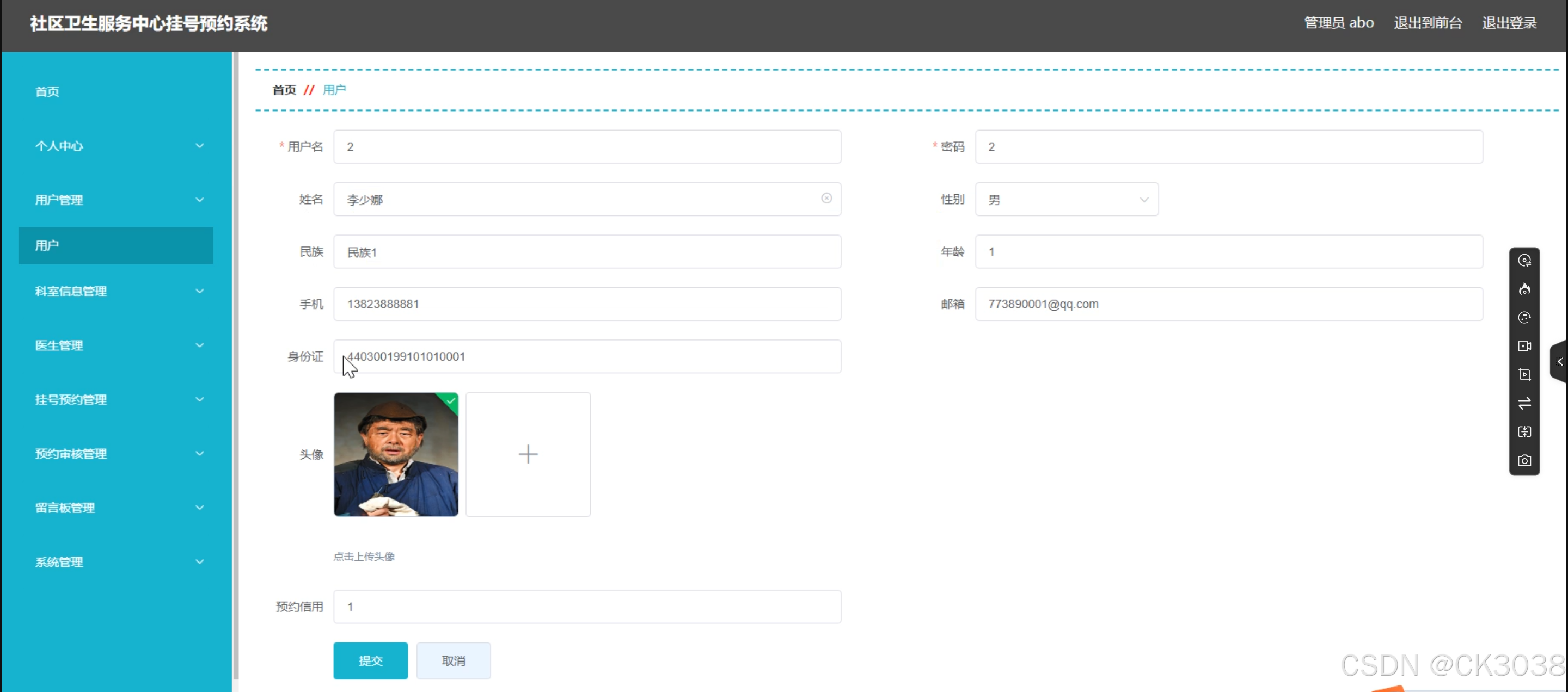 - 提供患者信息的录入、修改、删除等功能。