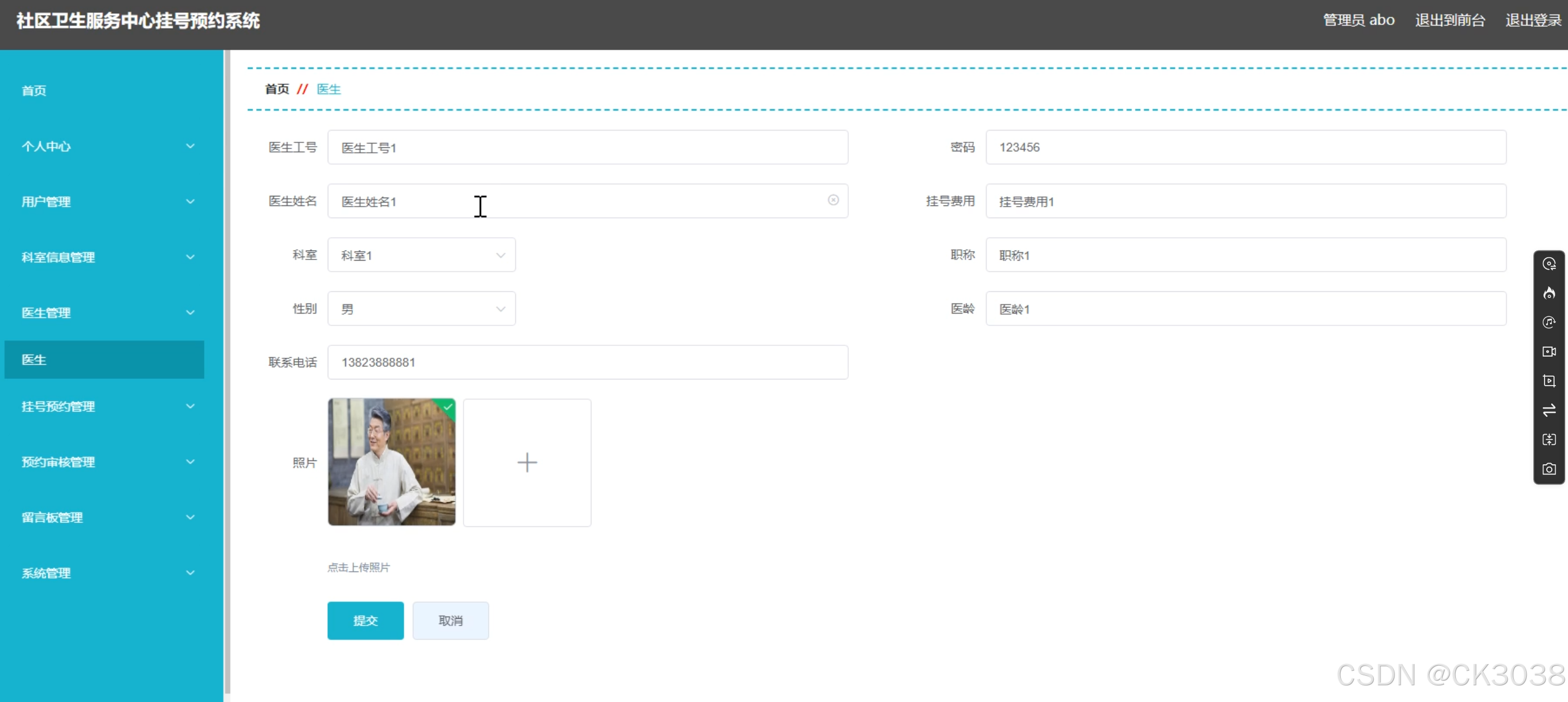 - 提供医生信息的录入、修改、删除等功能。