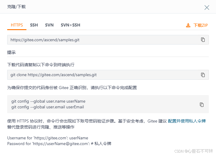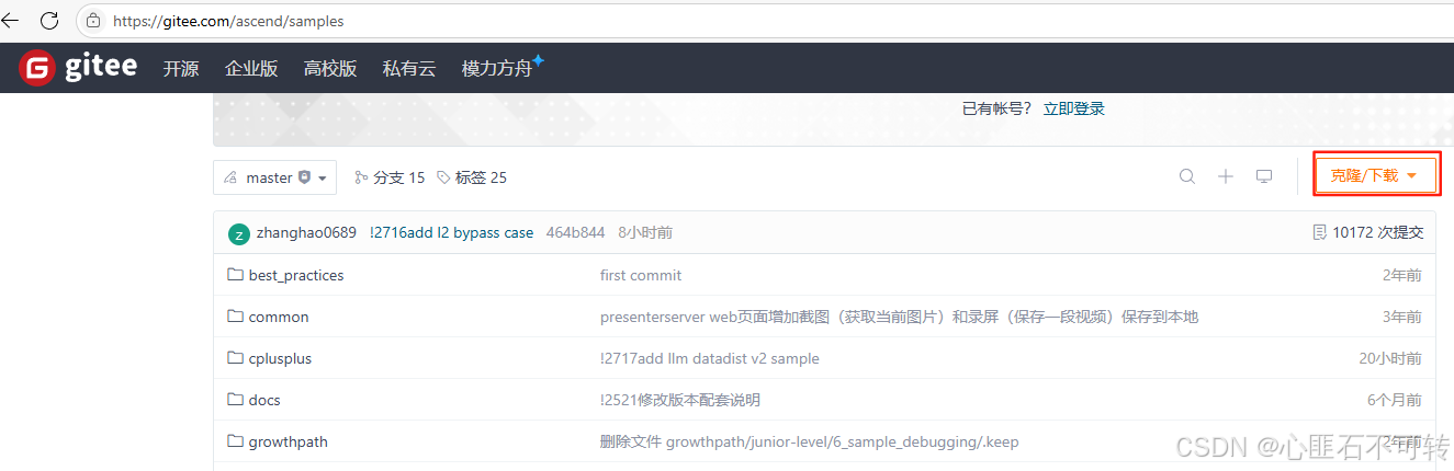 samples仓右上角选择 【克隆/下载】 下拉框并选择 【下载ZIP】。