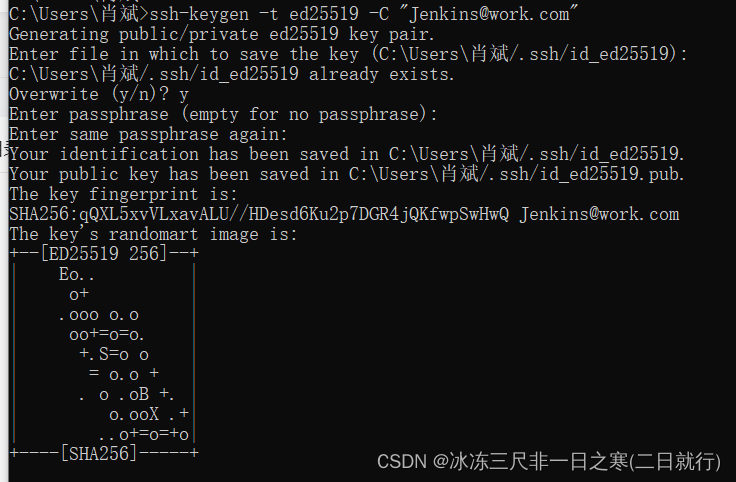 在Jenkins的宿主机上执行以下命令,一直按回车即可。(Windows cmd 中执行是一样的)