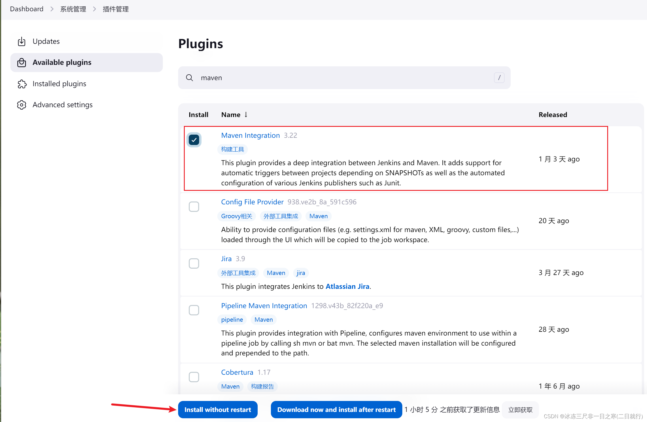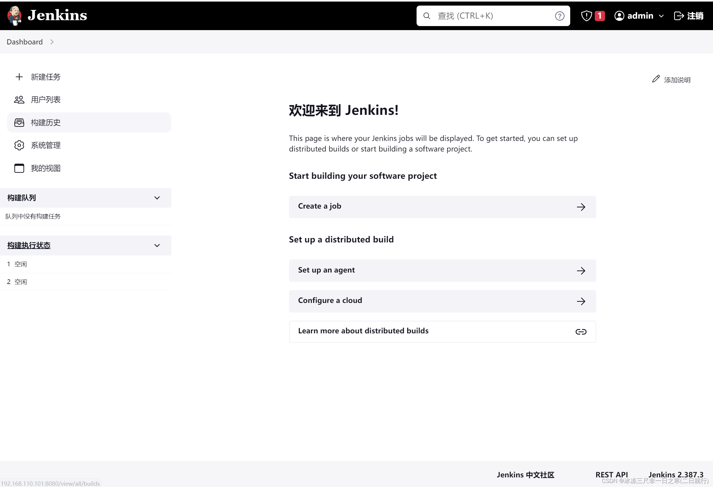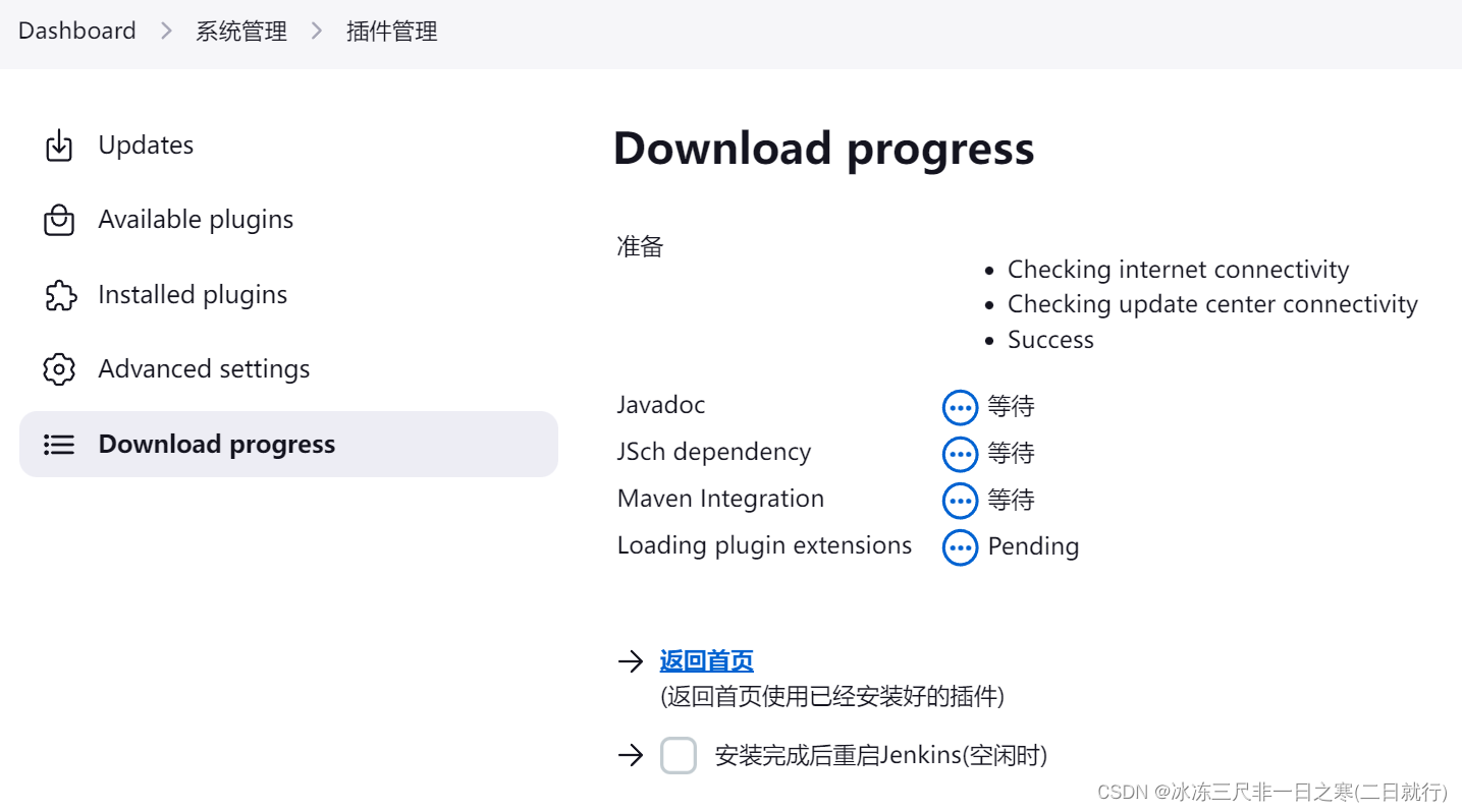 之后重启Jenkins服务,再重新刷新Jenkins启动页面即可。
