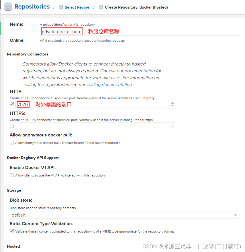 点击Create repository,进行如下配置,我们的私服仓库就搭建好了。