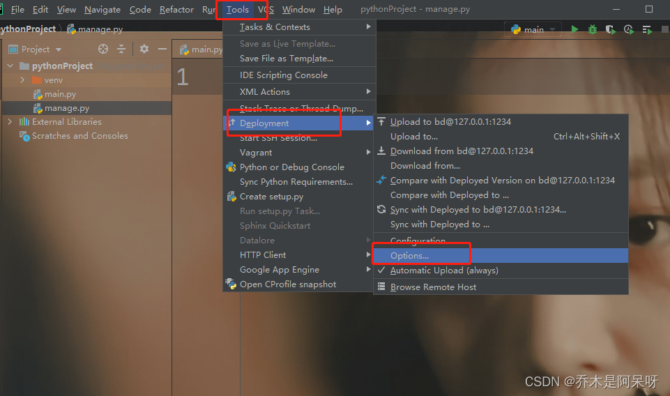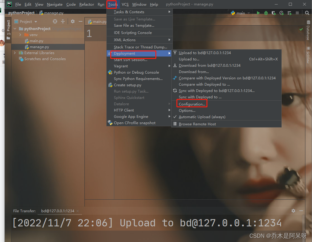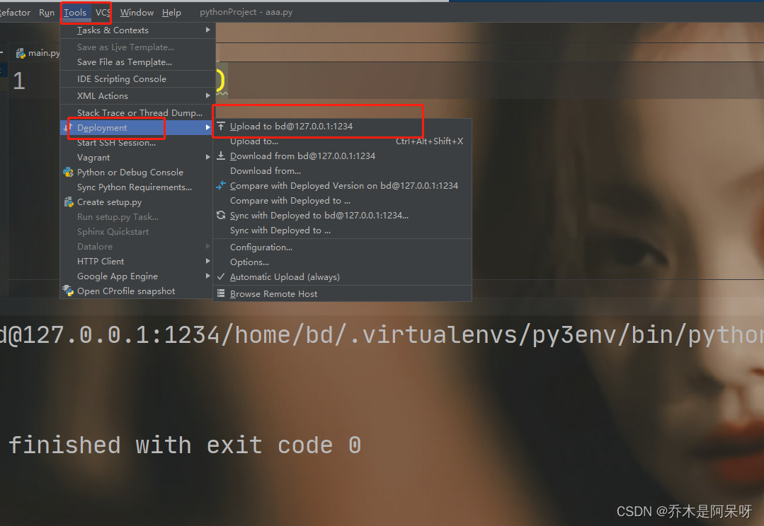 f.在tools工具中找到部署Deployment,里面找到配置;