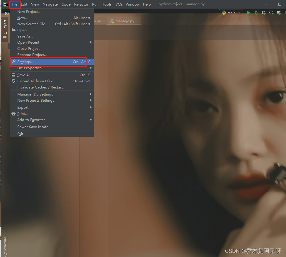 b.此时,点击file,找到setting,点进去查看配置信息;