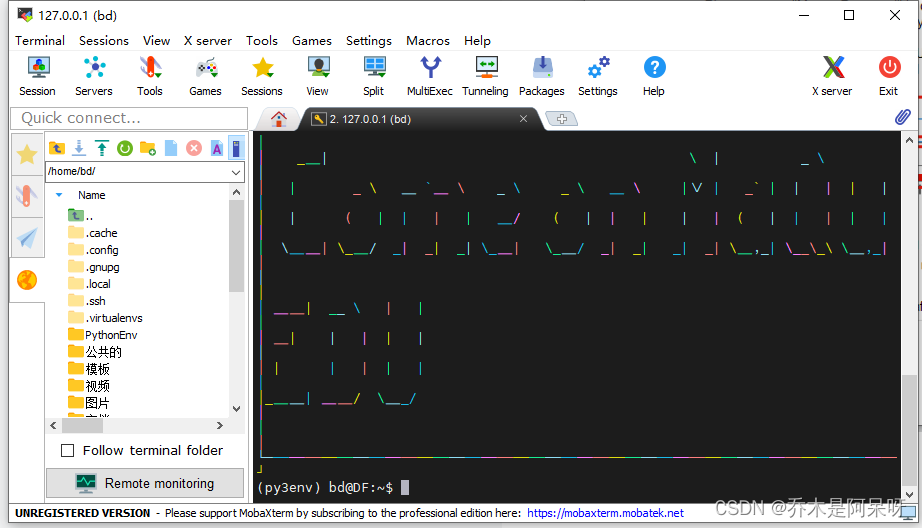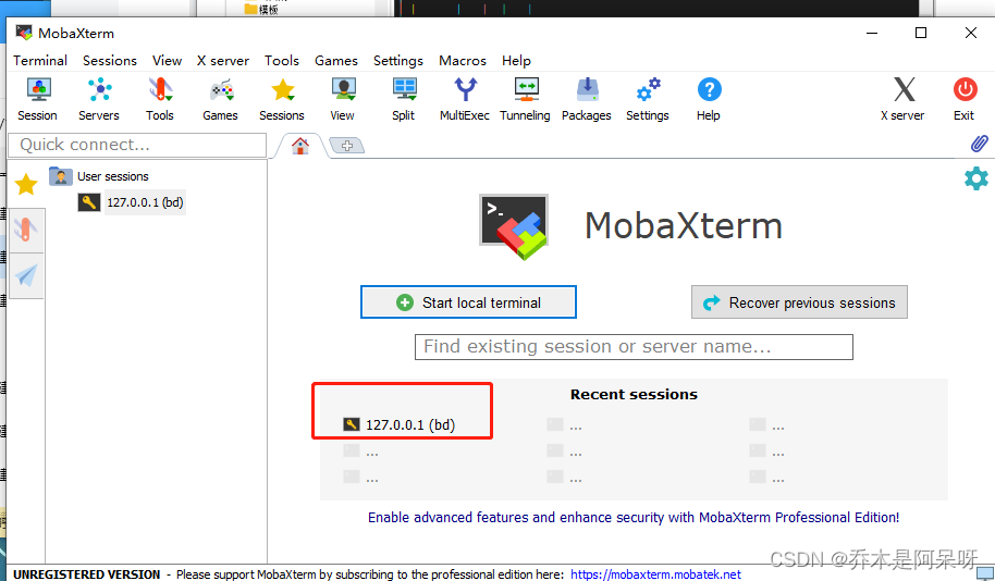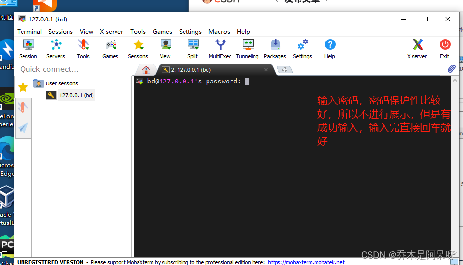 d.打开MobaXterm软件,点击Session,再采用SSH来进行连接;