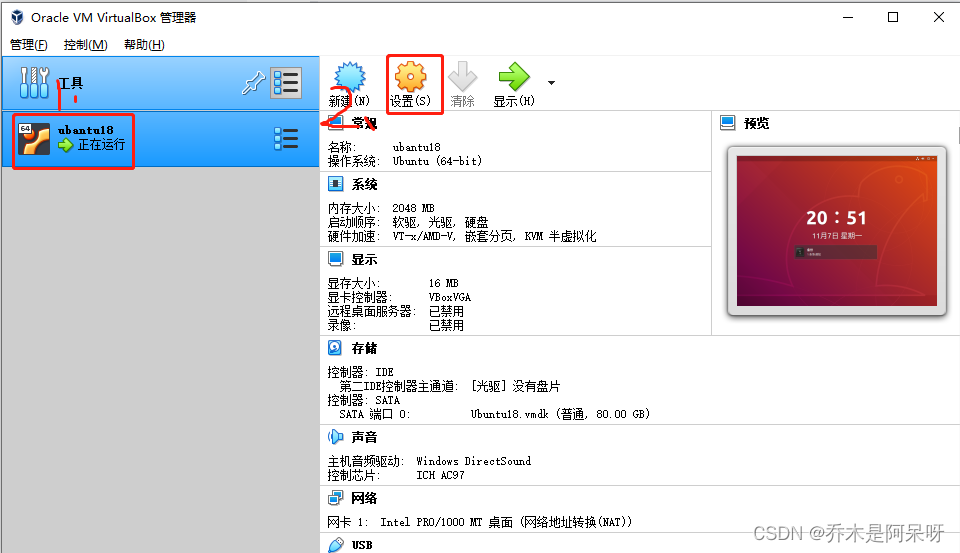 a.打开VM VirtualBox软件,选中虚拟机,并点击设置按钮;